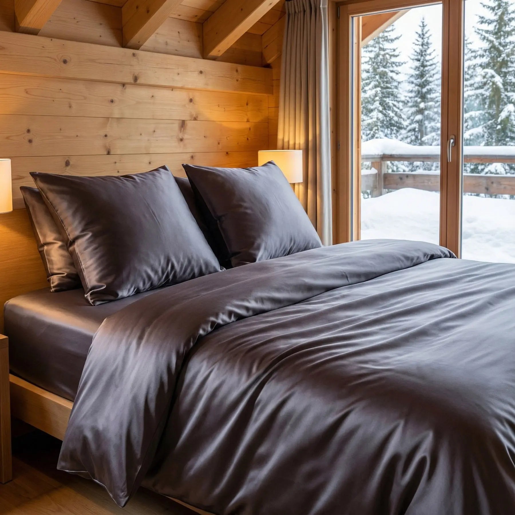Chez La Maison du Satin, nous utilisons uniquement un satin authentique tissé en soie de mûrier, sans polyester.